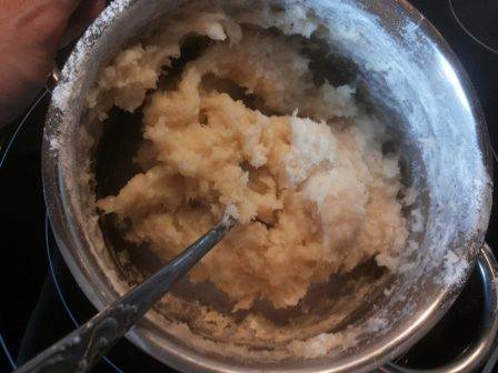 Картофель измельчаем, добавляем яйцо, муку. Должно получиться мягкое тесто.