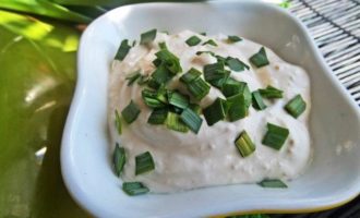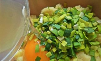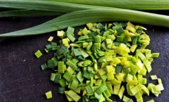 Лук-порей измельчить. Или обычный зеленый лук, несколько перышек.