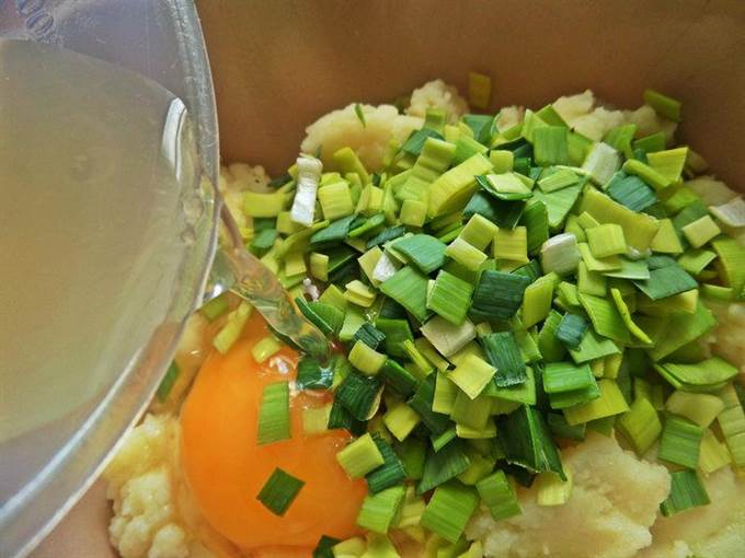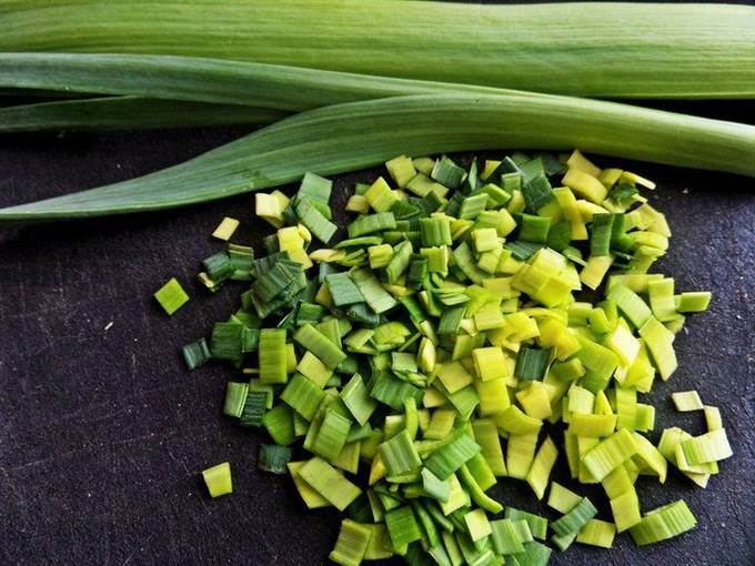 Лук-порей измельчить. Или обычный зеленый лук, несколько перышек.
