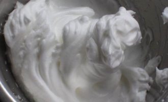 Взбить белки со щепоткой соли до устойчивых пиков.
