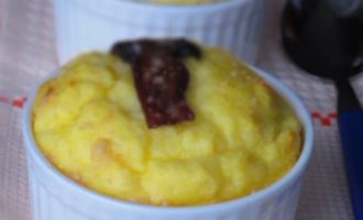 Соединить картофельное пюре, желтки, пармезан, грибы и хорошо перемешать. Движениями снизу вверх ввести взбитые белки и аккуратно перемешать до получения однородной массы.