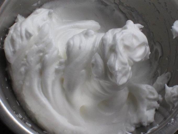 Взбить белки со щепоткой соли до устойчивых пиков.