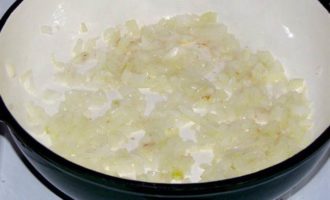 • Разогреть в сковороде 2 ст. л. растительного масла и немного обжарить мелко нарезанный лук.