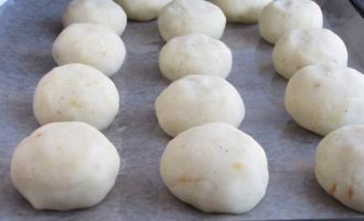 • Разделить тесто на одинаковые колобки, примерно по 50 г.
