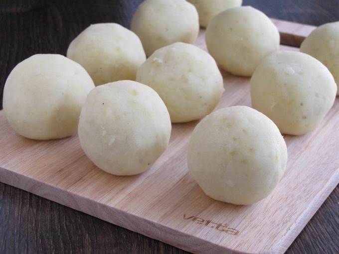 • Разделить тесто на одинаковые колобки, примерно по 50 г.