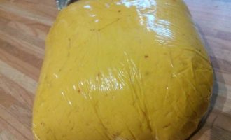 Тесто собралось в комок, обернуть его пищевой плёнкой и отправьте в холодильник на 2 часа.