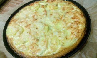 Выпекать тарт при той же температуре около 30-45 минут. Важно поставить тарт в нижний отдел духовки, чтобы он не пригорел. Проверьте картофель на готовность, в противном случае увеличьте время выпечки на 5 — 10 минут. Зависит от сорта картофеля и тонкости его нарезки. Вот он красавец!