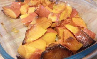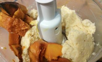 Тыква у меня запечённая заранее. Ставлю запекаться сразу некоторое количество тыквы, храню в холодильнике и по мере надобности добавляю в то или иное блюдо. Из общего количества нам понадобится 100 г готовой тыквы.