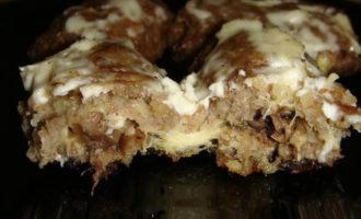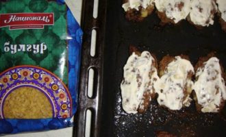 Через 20 минут смазать кеббе чесночно-майонезным соусом и запекать еще 10 минут.