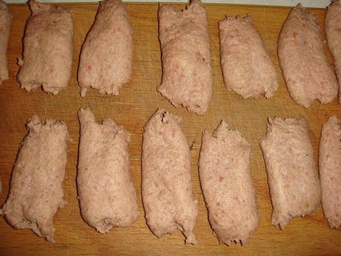 Устанавливаем в мясорубку насадку для кеббе и пропускаем через нее фарш. Отделять фарш пальцами. Если такой нет, можно лепить руками и делать внутри отверстие для начинки пальцем.