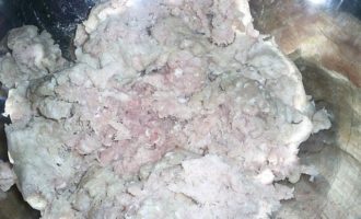 Из свинины и говядины приготовить фарш. Я достала заранее приготовленный из морозилки.
