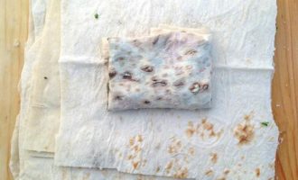 Лаваш нарезаем квадратами со стороной примерно 20 см.
