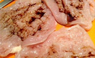 На каждый кусочек филе вылить ст ложку соевого соуса. Оставить на 15 минут.