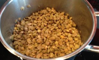 • Чечевицу промыть, залейте кипятком и варите 30 минут до готовности.
