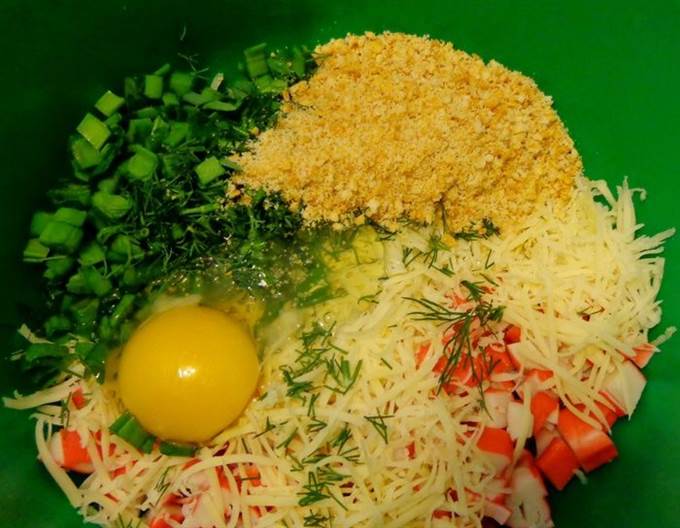 • Соединить все ингредиенты, добавить яйца и майонез для скрепления всего в однородную массу.