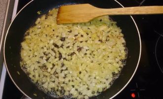 Обжариваем репчатый лук на сливочном масле до золотистого цвета.