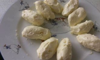 Сливочное масло поделить на 11 продолговатых кусочков и положить в морозилку на 15-20 минут.