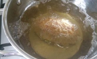 Разгреть подсолнечное масло. Масло должно доходить минимум до половины котлеты. Теперь важный момент. Во время жарки нужно постоянно поворачивать котлету, чтобы масло от сильного жара не впиталось в фарш. Жарим 7-8 минут.