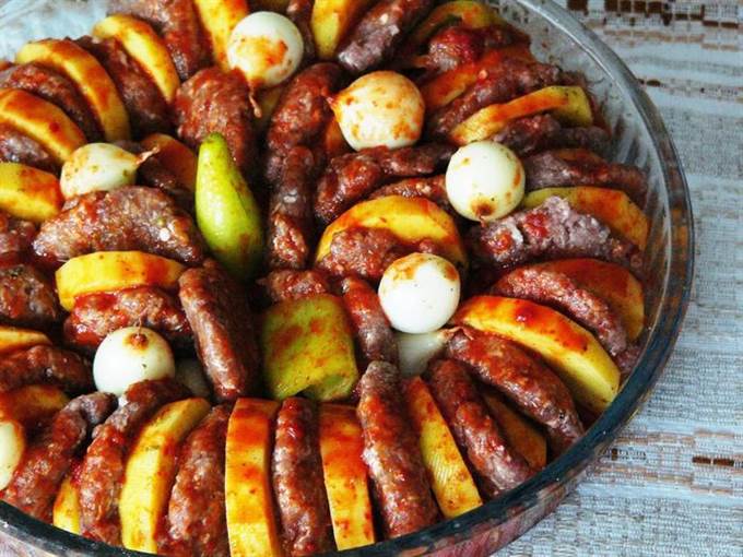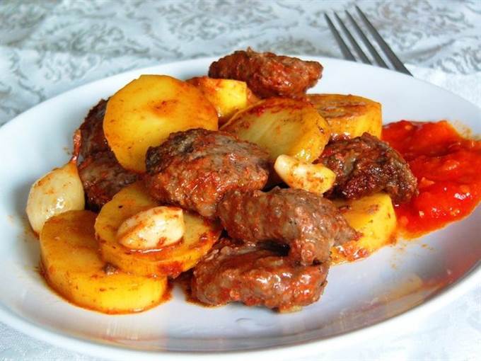 Подаем как самостоятельное блюдо в сопровождении овощного салата, ассорти их маринованных овощей и свежих хлебных лепешек.