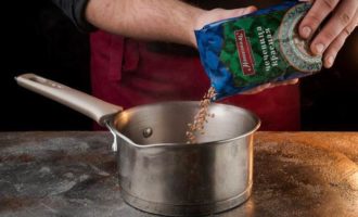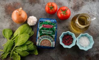 • Отварить чечевицу красную ТМ «Националь» до готовности.
