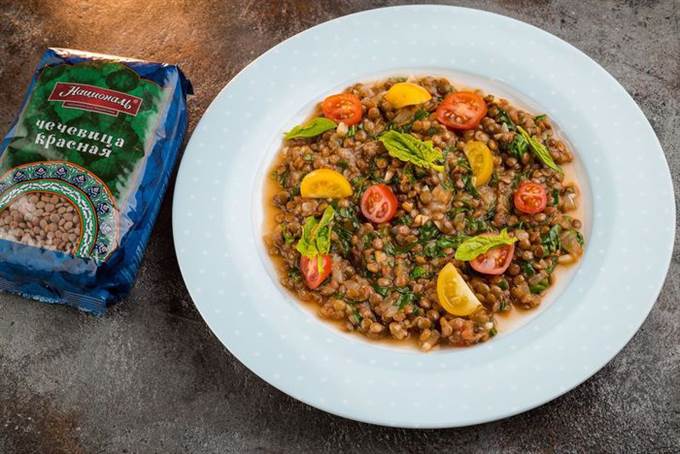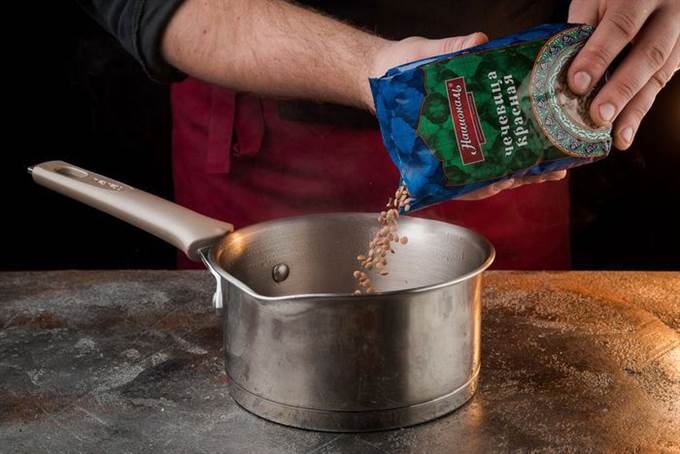 • Отварить чечевицу красную ТМ «Националь» до готовности.