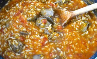 • Всыпать рис и, помешивая, варить все 2 минуты.