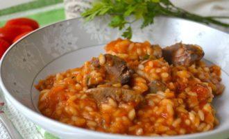 «Красное» ризотто с куриной печенкой
