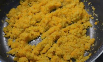 • Разогреть в сковороде оставшееся масло и жарить лук, морковь и сельдерей 10 минут, помешивая.