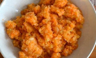 • Овощи (крупную луковицу, морковь и сельдерей) очистить и мелко нарезать. Я использую для этих целей блендер.