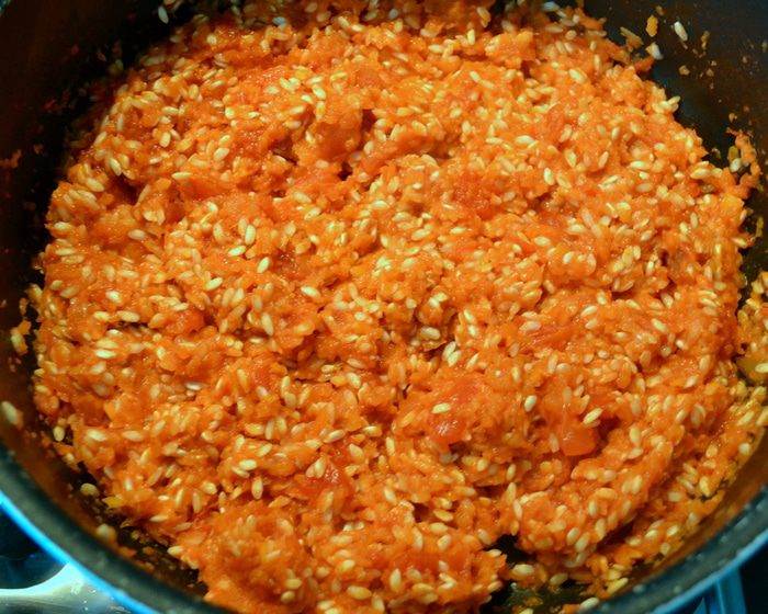 • Всыпать рис и, помешивая, варить все 2 минуты.