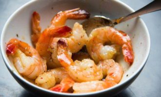 • Опустим в маринад креветки оставим хотя бы на 15 минут. Креветки можно использовать как уже отваренные, так и сырые. Просто для сырых потребуется чуть больше времени при обжарке.