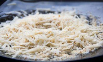 • Подготовим панировку, для этого смешаем тертый сыр и панировочные сухари один к одному. Мне больше нравиться когда сыр чувствуется и становится хрустящим, поэтому я его потерла на средней терке, а не на маленькой.