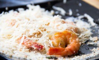 • Креветки обвалять в сырной панировке и обжарить на сильном огне в большом количестве масла. Если используете готовые креветки, то хватит и 10-15 секунд на каждой стороне. Жарить лучше партиями по 3-4 штуки, чтобы успевать за ними следить. Если же креветки сырые, то увеличить время и уменьшить огонь, а можно и вовсе запечь.