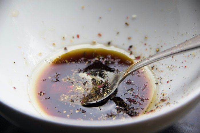• Первым делом подготовим маринад для креветок. В миске смешаем соевый соус, табаско, масло и сок лайма.