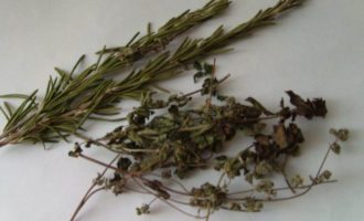 Для маринада необходимо листики орегано и розмарина, чеснок измельчить в блендере. Добавить оливковое масло, лимонный сок, соль, перец и перемешать.