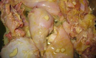 Выливаем маринад. Кролика обжариваем со всех сторон 15 минут.