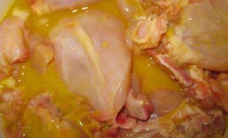 Кусочки кролика кладем в маринад на 40 минут — 1 час.
