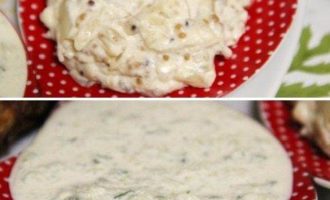 Пока индюшка запекается, можно приготовить соус к ней. В этот раз я сделала сразу два. И хоть основной ингредиент у них одинаковый (сметана), вкус совершенно разный! Вот такими они получились в итоге.