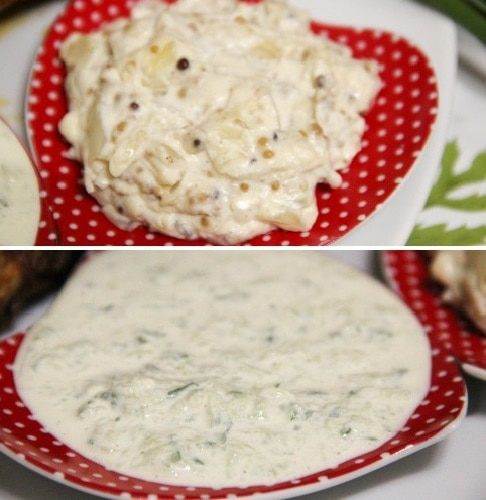 Пока индюшка запекается, можно приготовить соус к ней. В этот раз я сделала сразу два. И хоть основной ингредиент у них одинаковый (сметана), вкус совершенно разный! Вот такими они получились в итоге.
