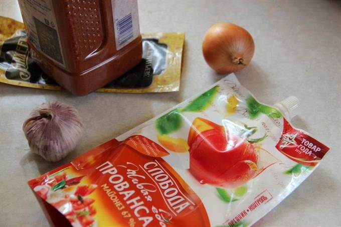 Подготовим ингредиенты. Для запекания мяса и птицы люблю использовать майонез ТМ «Слобода» Провансаль. У него нежный, ненавязчивый вкус, который в то же время подчеркивает аромат мяса.