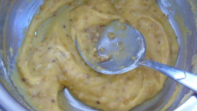 • Горчицу смешать с крахмалом, влить яблочный сок и подогреть до загустения.