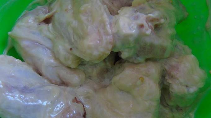 • Добавить соусы и хорошо обмазать крылья. Оставить мариноваться на 2 часа.
