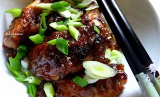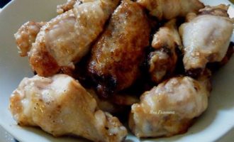 • Разогреть большую и тяжелую сковородку с маслом. Вынуть крылья из маринада (маринад сохранить) и обжарить по 7 минут с каждой стороны. По жаренные крылья отложить в сторону.