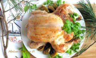 Курица, фаршированная орехами, черносливом и яблоком