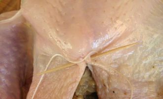 • Начинка при такой шнуровке держится в брюшке курицы хорошо, не вытекает.