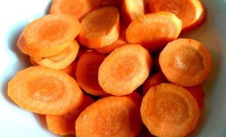 • Морковь нарезать крупными колечками.
