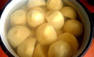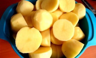 • Сразу разрежем картофель на половинки.