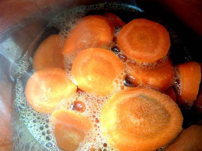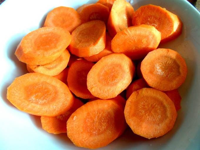 • Морковь нарезать крупными колечками.