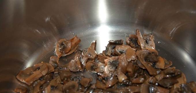 Нарезаем свежие шампиньоны кольцами или полукольцами, обжариваем их, как и каждый последующий ингредиент, на небольшом количестве рафинированного подсолнечного масла. Складываем в кастрюлю.