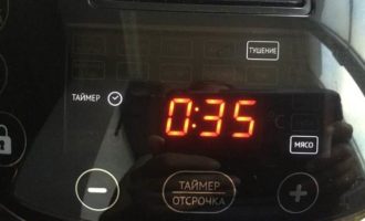 Закройте мультиварку и установите программу: тушение, мясо, 35 минут.